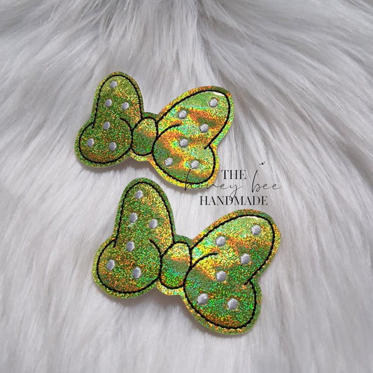 Glitter Lime Green Mouse Bow Snap Clip Set