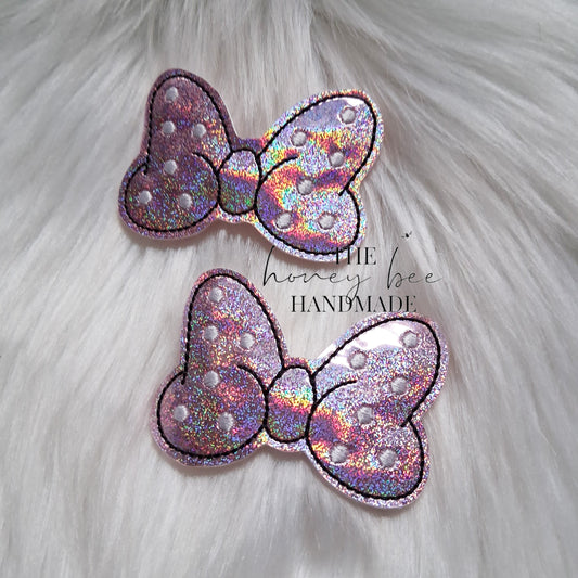 Glitter Rainbow Mouse Bow Snap Clip Set