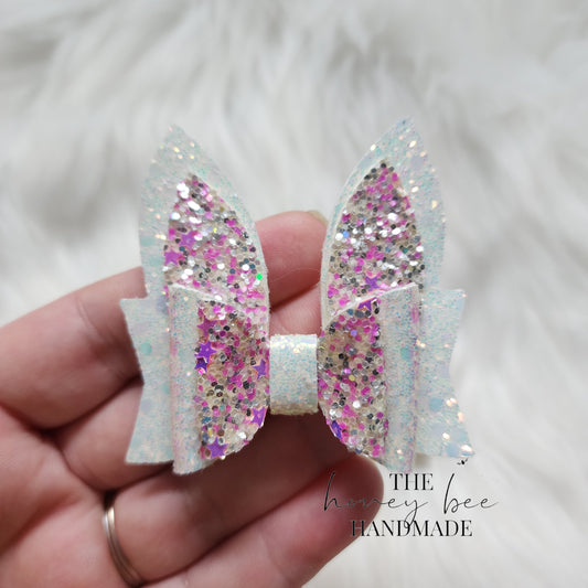 3in White and Pink Glitter Bunny Ears Hair Bow