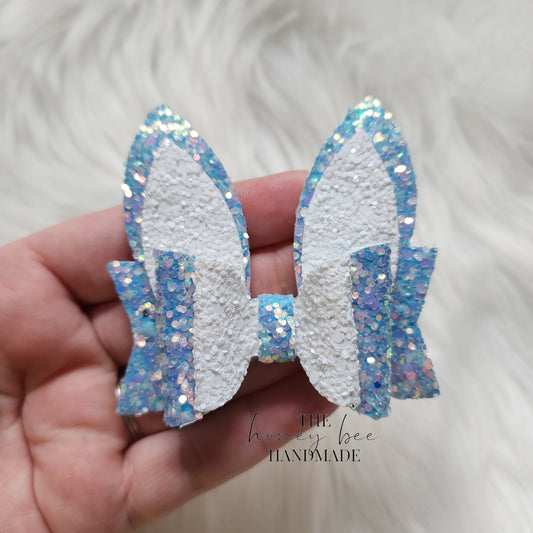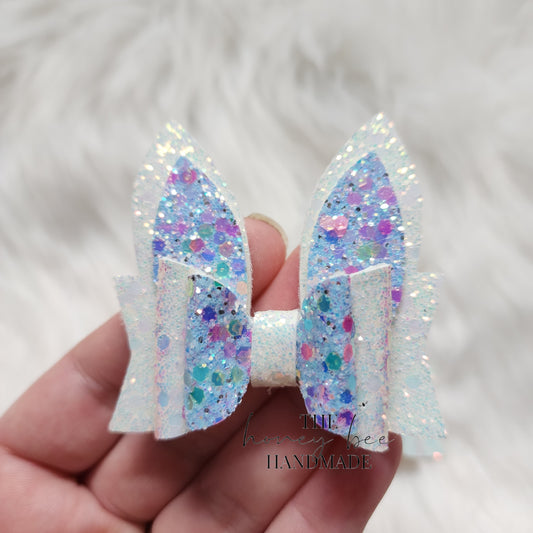 3in Blue and White Glitter Bunny Ears Hair Bow