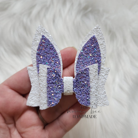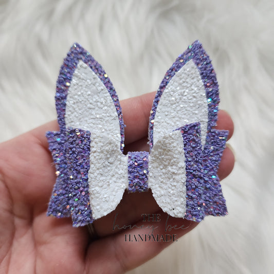 3in Purple and White Glitter Bunny Ears Hair Bow