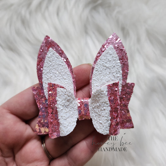 3in Pink and White Glitter Bunny Ears Hair Bow