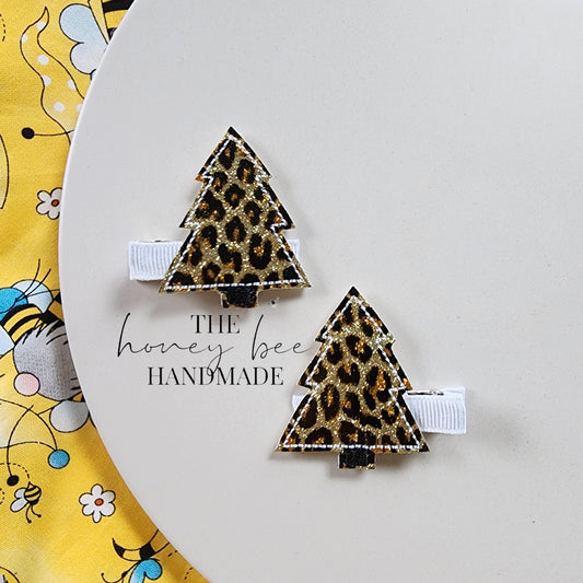 Glitter Cheetah Christmas Tree Feltie Hair Clip
