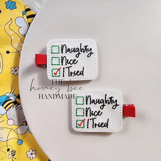 Glitter Naughty, Nice, I Tried Feltie Hair Clip