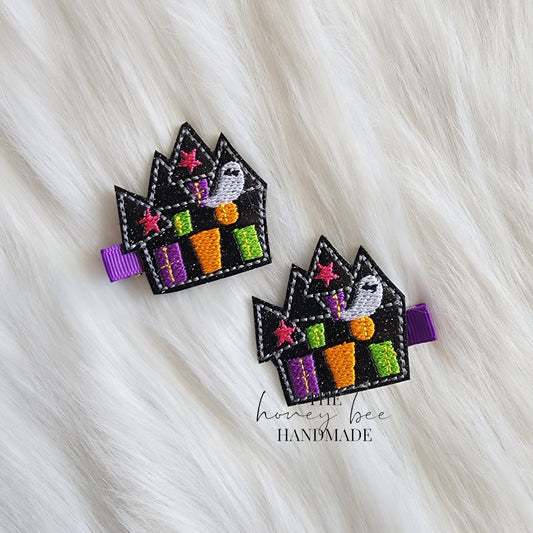 Glitter Haunted House Feltie Hair Clip