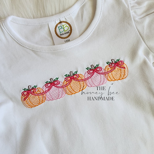 Girly Fall Pumpkins Embroidered T-Shirt