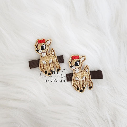 Glitter Reindeer Feltie Hair Clip
