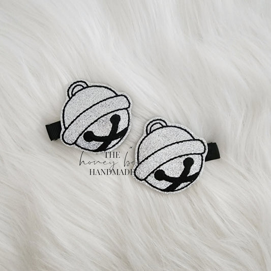 Glitter Silver Bells Feltie Hair Clip