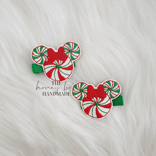 Glitter Peppermint Mouse Feltie Hair Clip