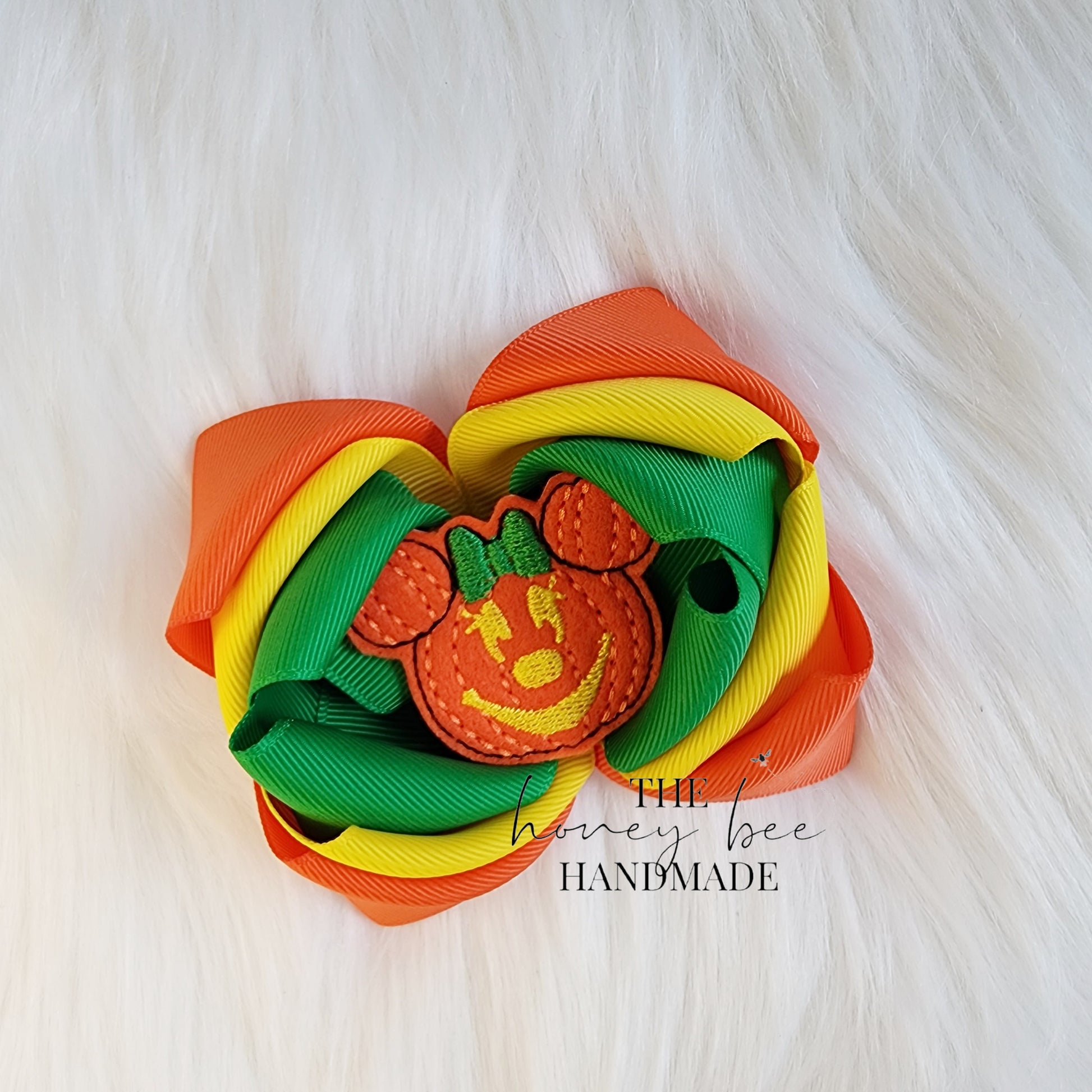 3in Triple Ms Mouse Pumpkin Feltie Boutique Bow