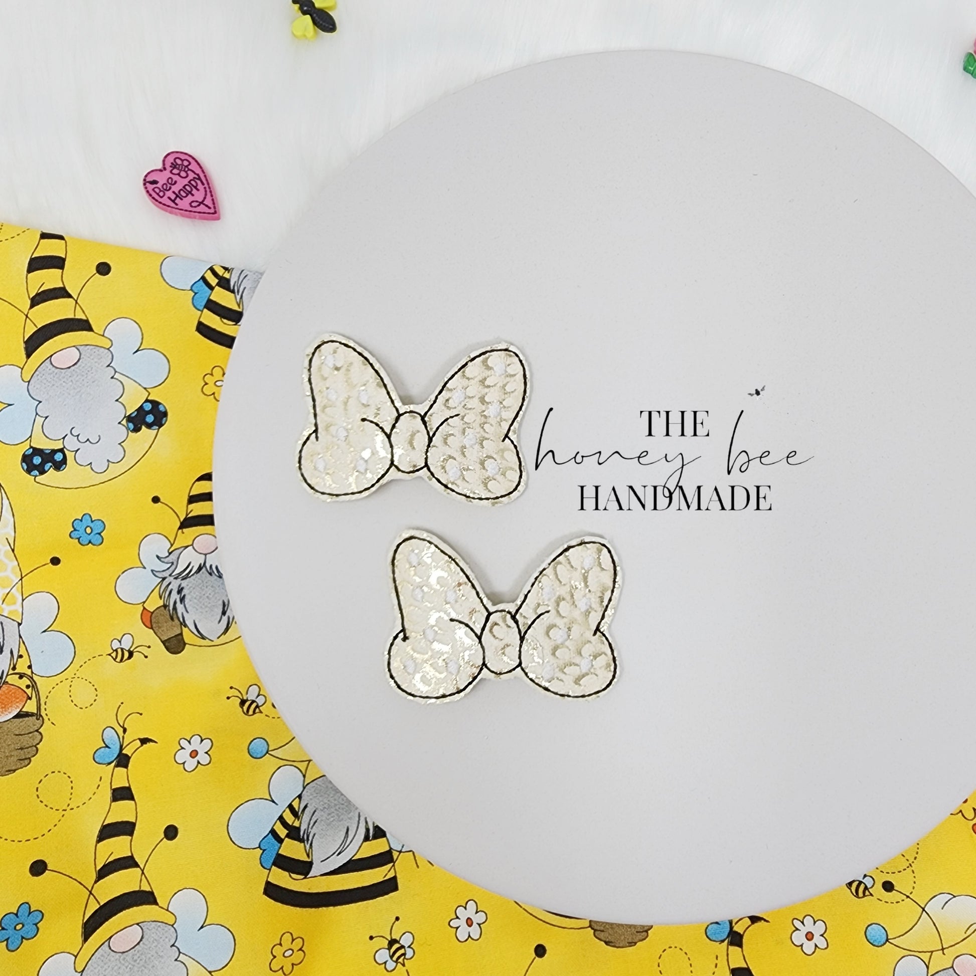 Cream Peacock Feathers Mouse Bow Snap Clip Set