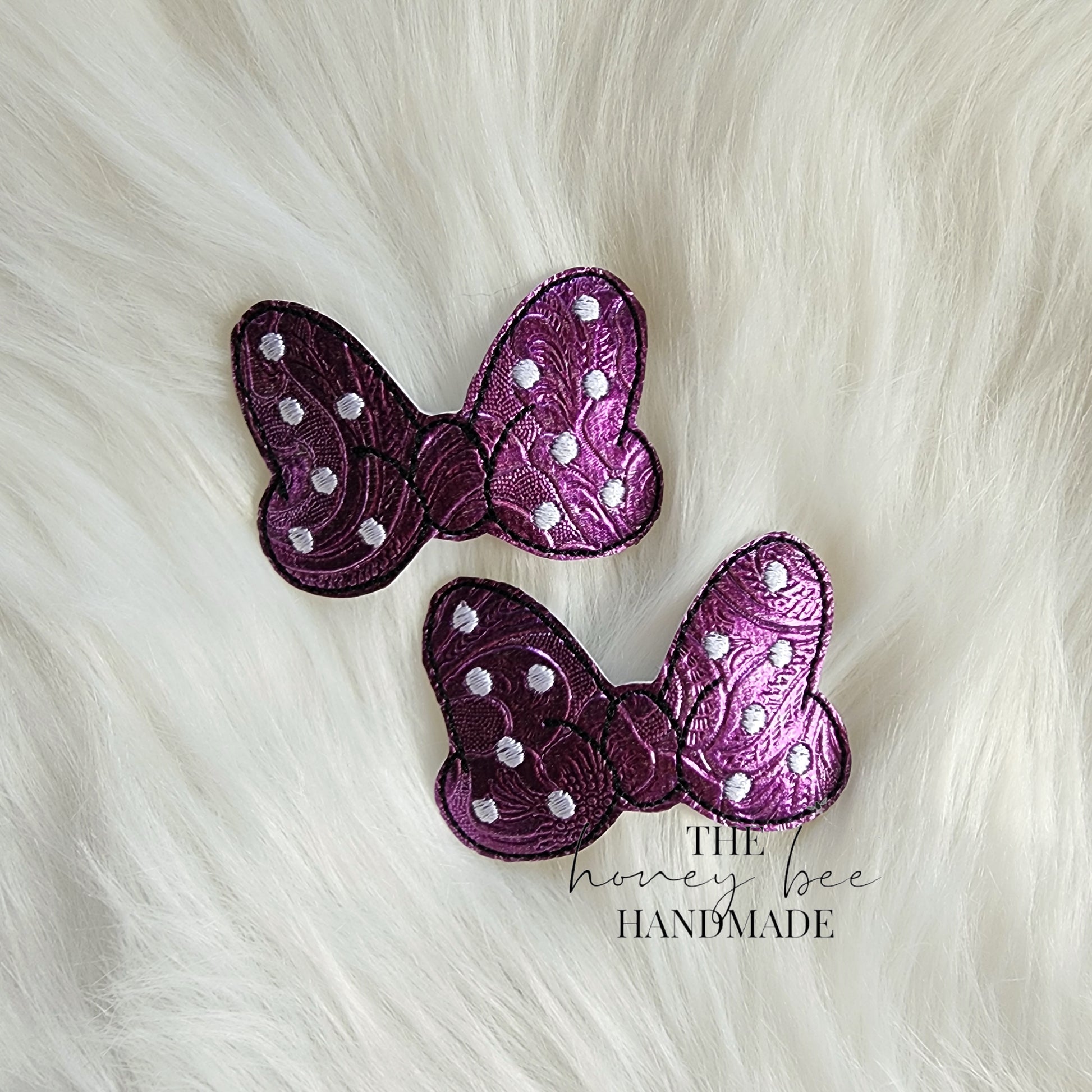 Dk Purple Textured Mouse Bow Snap Clip Set