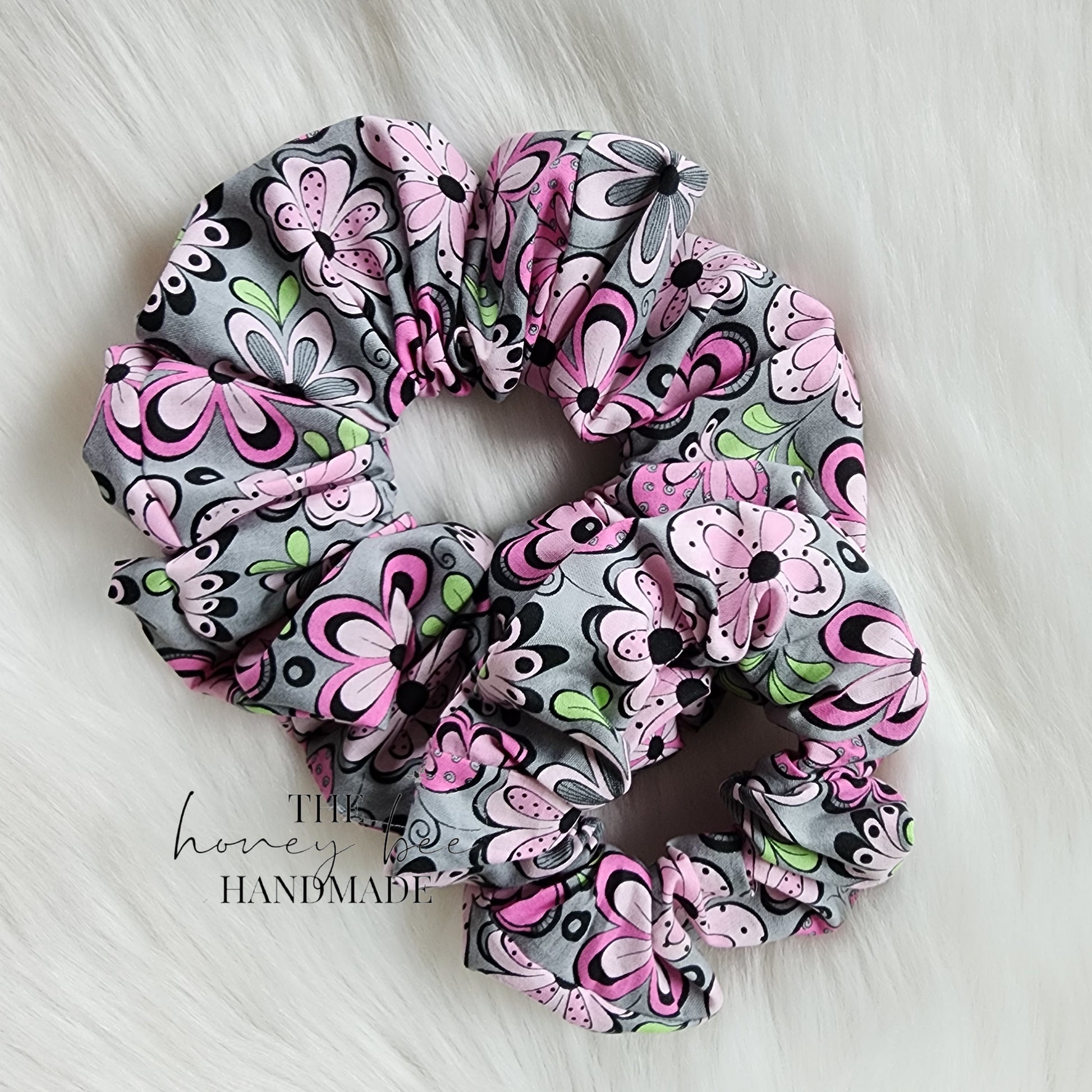 Grey Floral Scrunchie
